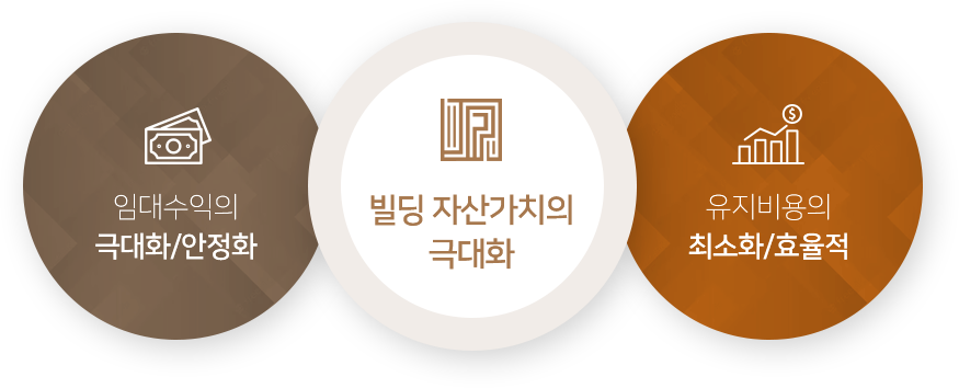 또한 건물 매각시 자산의 가치를 극대화를 목표로 삼고 높은 차익을 보장하며, 임대인의 불필요한 비용은 줄이고 낮은 비용으로 임대사업을 운영할 수 있도록 연구와 투자를 합니다.